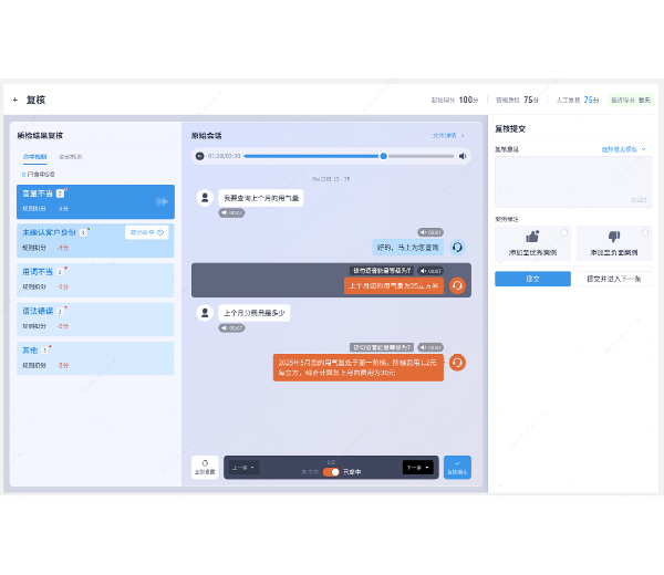 对呼叫中心语音以及安检记录的智能质检,系统以预设规则库为基准,实现 100% 覆盖检查,违规识别响应时间缩短至分钟级,较人工抽样质检的问题发现率提升 90%;例如识别通话中的违规用语、服务态度不佳等问题。相比人工质检的随机性和滞后性,智能质检更加全面、及时,能帮助管理者快速发现服务中的不足,及时进行改进,确保服务质量始终保持在较高水平。